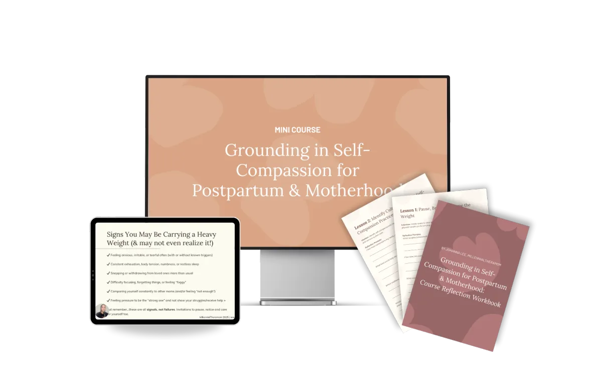 Right now you get instant access to "Grounding in Self-Compassion for Postpartum & Motherhood" A 3-step journey to help mamas go from emotional overwhelm to grounded, values-rooted motherhood